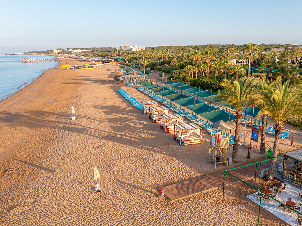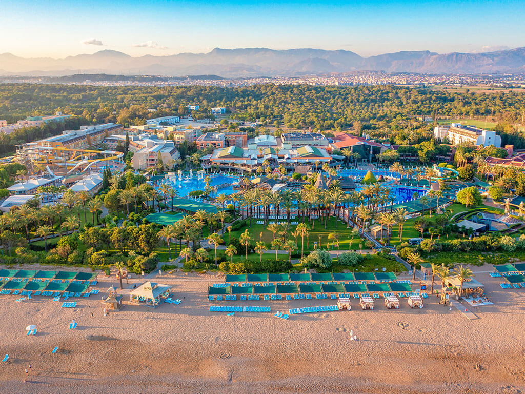 Hotellet ligger ved Side på Tyrkias sørkyst. Side er en fascinerende blanding av nytt og gammelt, da den moderne feriebyen er oppført oppå velbevarte romerske monumenter i en labyrint av koselige små gater. Skjem deg bort med en middag på en av de mange lekre restaurantene, handle i vei i de spennende butikkene eller gå en tur langs vannet og nyt den magiske stemningen under stjernene i skjæret fra de opplyste ruinene.
