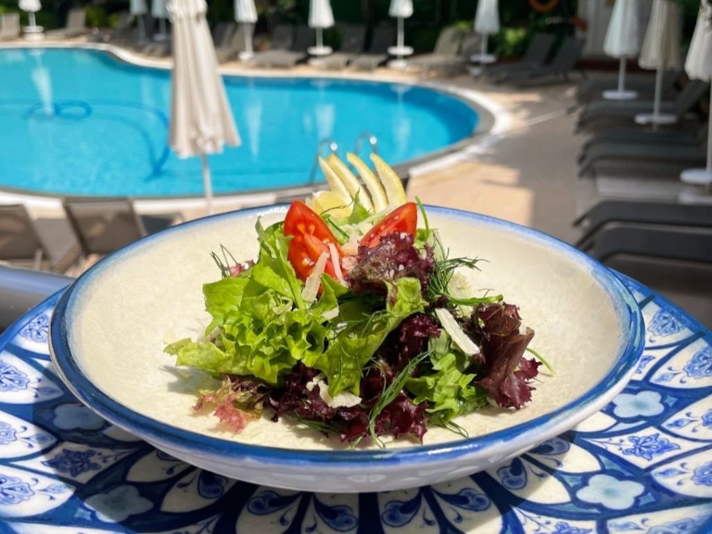 Når du har lyst på noe svalende, kan du velge mellom bassengbar og en detoxbar. På detoxbaren er fokuset på oppfriskende alternativer, perfekt når du vil ta en pause i skyggen og fortsette dagen med ny energi.