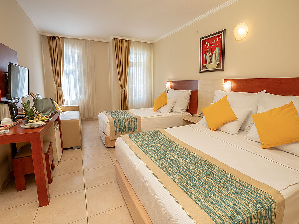 På Citrus Plaza Hotel bor du i rom som er laget for en enkel og komfortabel ferie, der hverdagens detaljer er på plass. Enten du vil starte dagen i ro og mak eller bare ha en god base mellom strand, basseng og byliv, er rommene utstyrt for å gjøre oppholdet smidig.