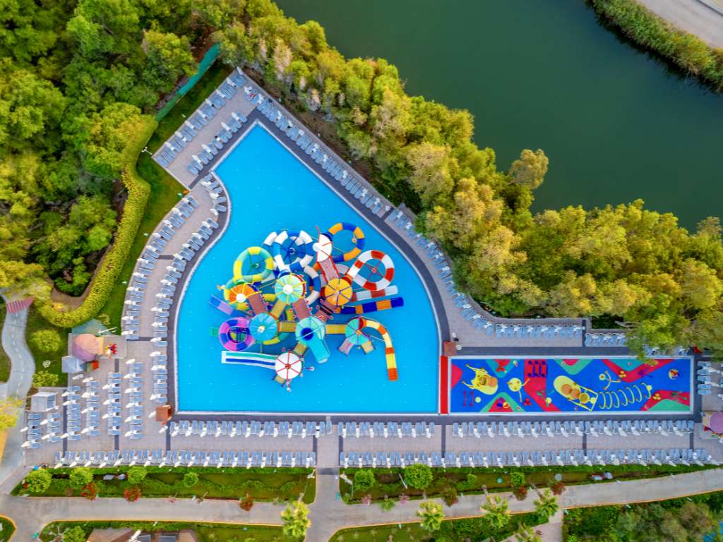 For de som søker adrenalin har Delphin Be Resort to heftige badeland - en med sju vannsklier for mindre barn og en litt tøffere med ni vannsklier som egner seg fra 12 år og oppover. Rundt det store badelandet renner en lazy river der du kan flyte rundt og nyte solen. Det finnes også et morsomt lekeområde med anti-skli belegg, vannsprutende fontener og ulike hinder – med andre ord perfekt for de yngre barna å springe rundt å tøyse i.
