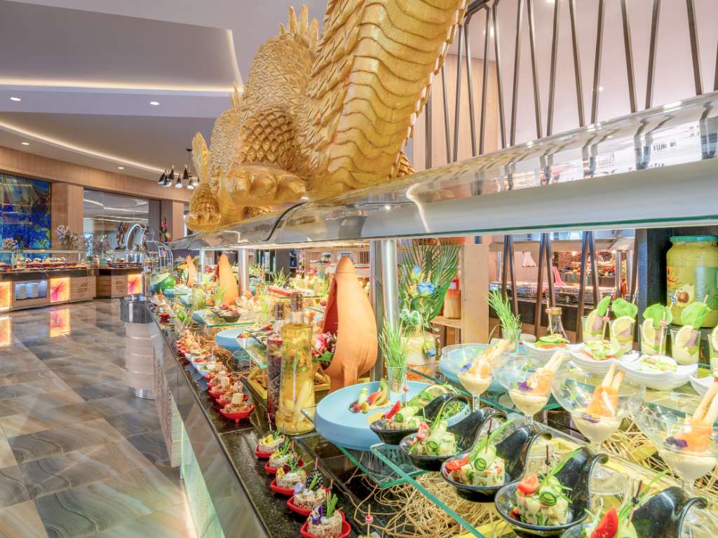 Delphin Be Resort har et førsteklasses All Inclusive-program. I hovedrestauranten serveres alle dagens måltider i form av brede og velsmakende bufféer med ulike tema. Det fine lokalet er delt inn i mindre seksjoner, noe som skaper en koselig atmosfære og dessuten minsker lydnivået i restauranten.