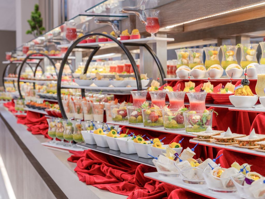 Bufféene er bygget opp som små kulinariske kvarter, nybakt, grillet, sprø salater og meze, velsmakende varme retter og vakkert komponerte desserter. Start morgenen med ferskpresset appelsinjuice og nyt varierte lunsj- og middagstemaer gjennom uken. Her møter buffémåltider en fine dining-følelse: tiltalende anretning, roligere sitteavdelinger og oppmerksomt personale som sørger for at alt flyter smidig.