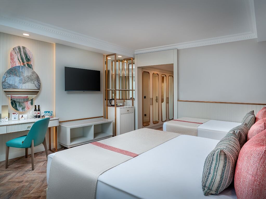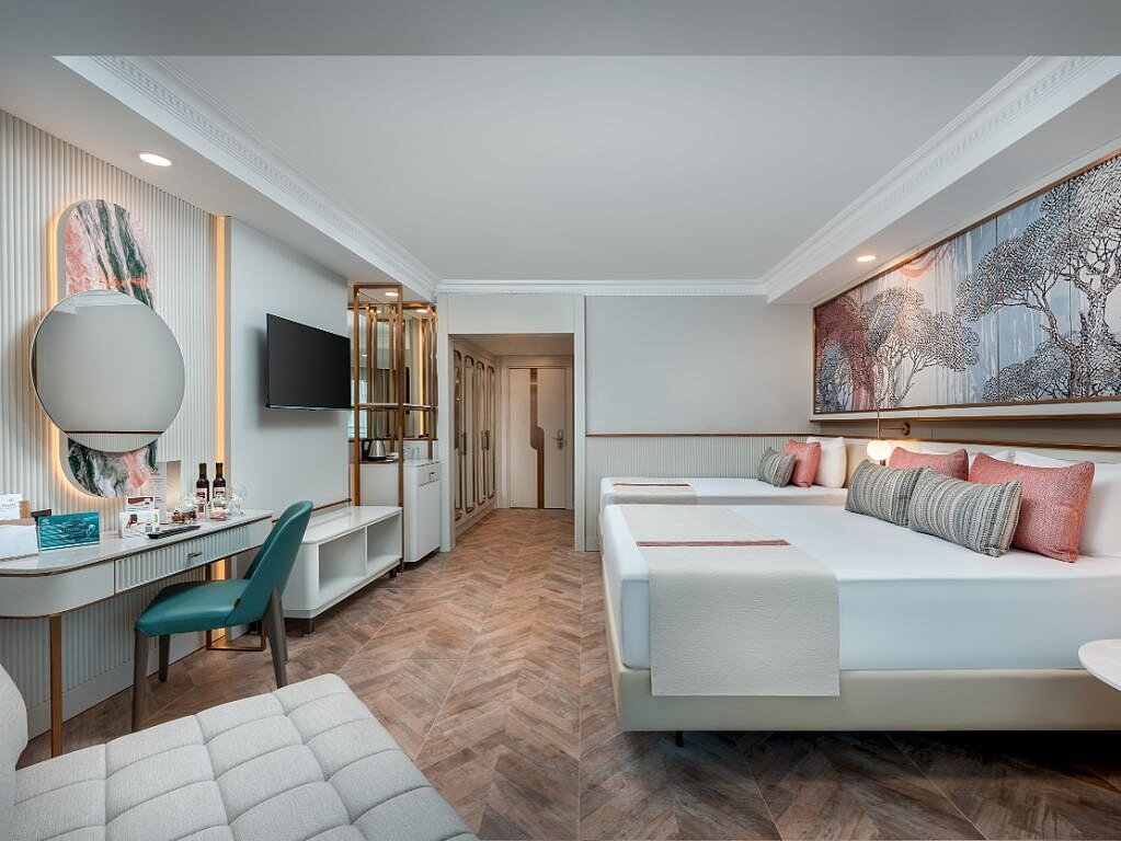 På Delphin Palace bor du i lyse, omsorgsfullt innredede rom med herlige detaljer og behagelige materialer.