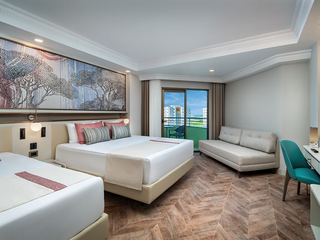 Et av Lara Beachs mest etablerte og populære luksushotell – nå i Nazars program. Delphin Palace gjennomgikk en omfattende renovering i 2025. Her venter et stort bassenglandskap, et fargerikt badeland og masse ferieglede. Stranden nedenfor hotellet og den lange piren byr på deilige soltimer ved havet, barna trives i den internasjonale barneklubben (4–12 år) og på det populære minitivoliet. Den korte transferen fra flyplassen gjør reisen enkel for både familier og par.