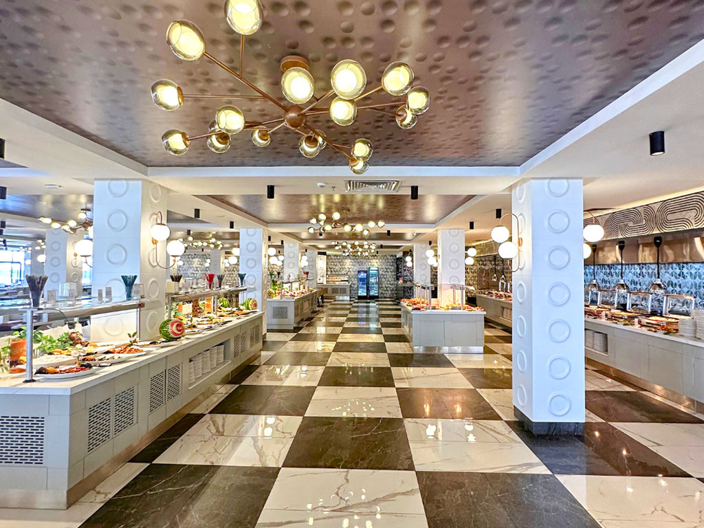 I hovedrestauranten serveres bufféer morgen, middag og kveld. I løpet av dagen tilbys forskjellige typer snacks samt pizza, kebab, frisk frukt og kaker rundt omkring på hotellområdet.