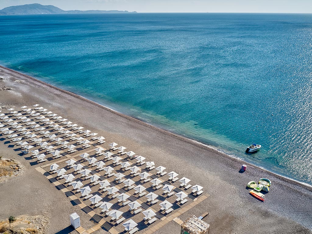 Rett nedenfor hotellet ligger den 500 meter lange stranden. Her finnes også en bar, så du slipper å gå opp til bassengområdet om du vil ha noe avkjølende eller mettende.