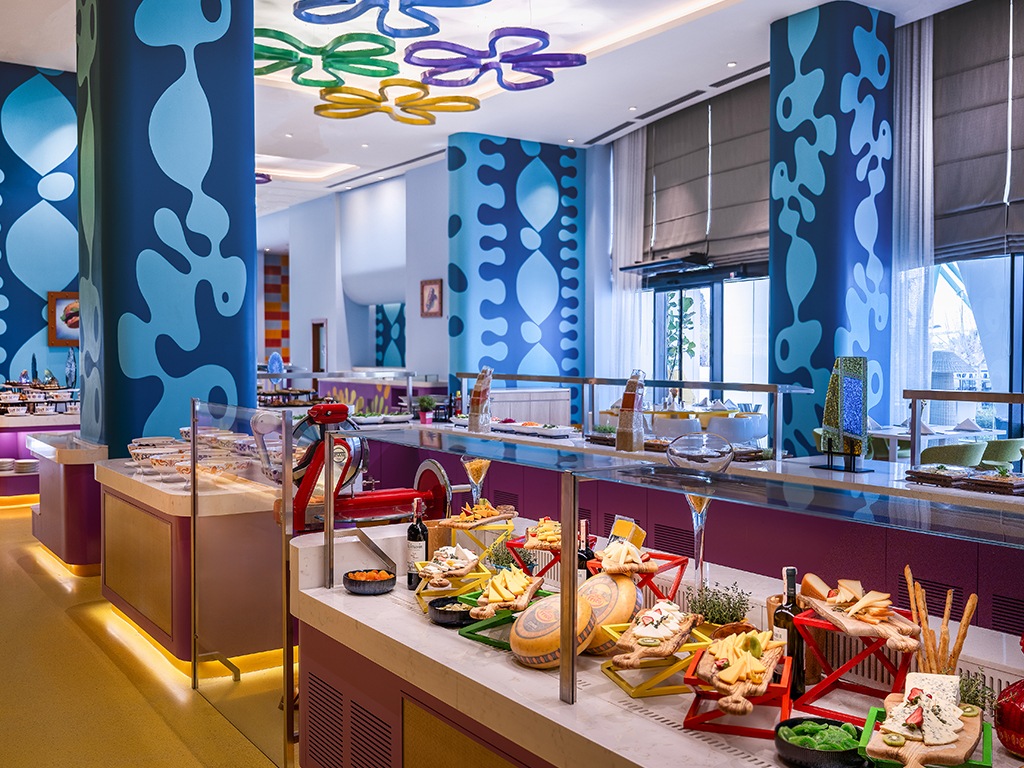 Måltiderna serveras i hotellets huvudrestaurang där fokus ligger på barnfamiljer. Känslan är lekfull och avslappnad, med gott om alternativ som brukar passa både små och stora – perfekt när energin ska räcka hela vägen från morgon till kvällens upplevelser.