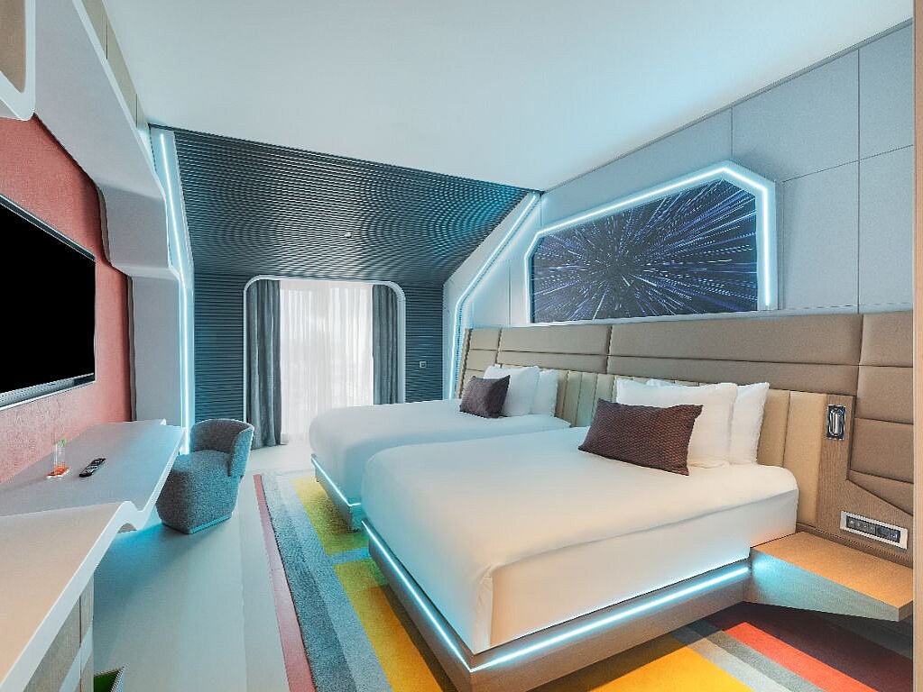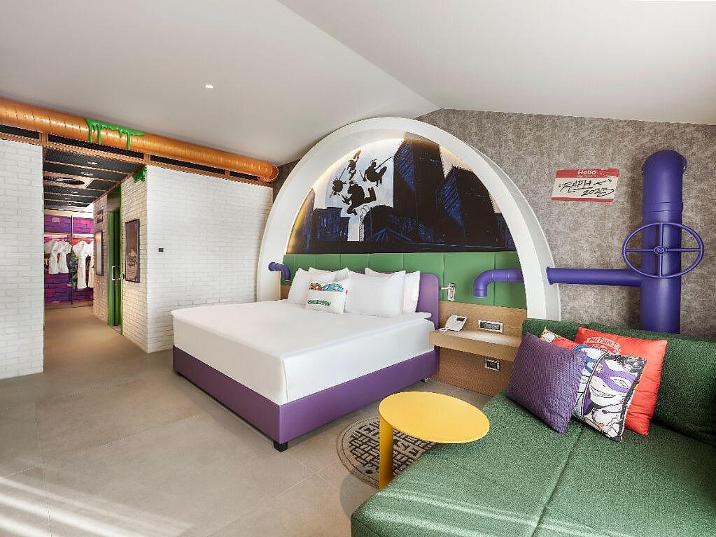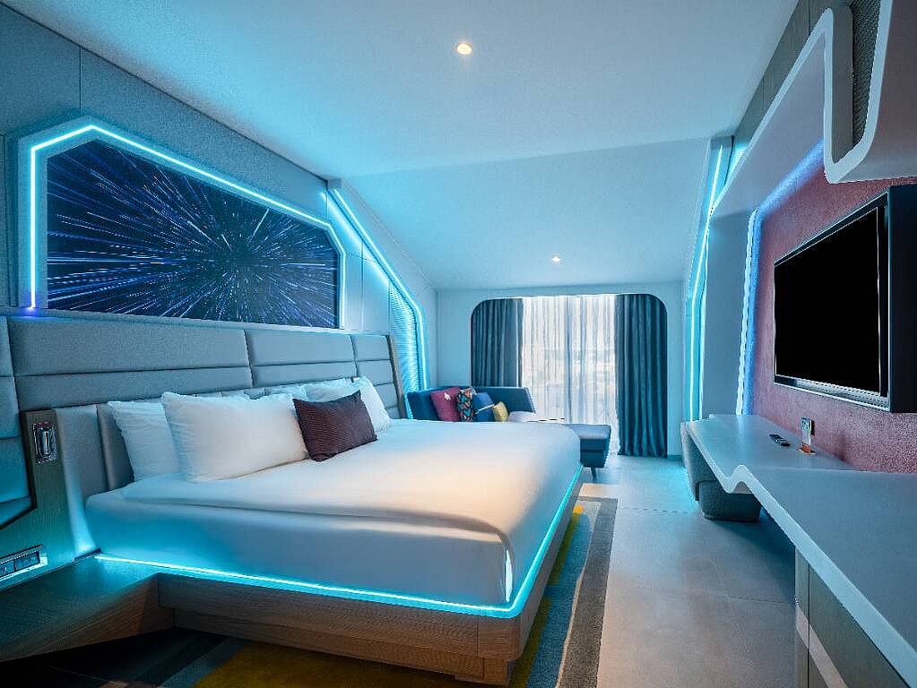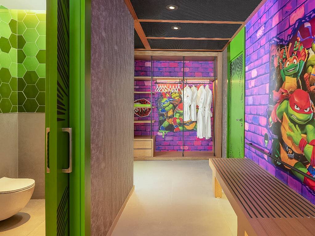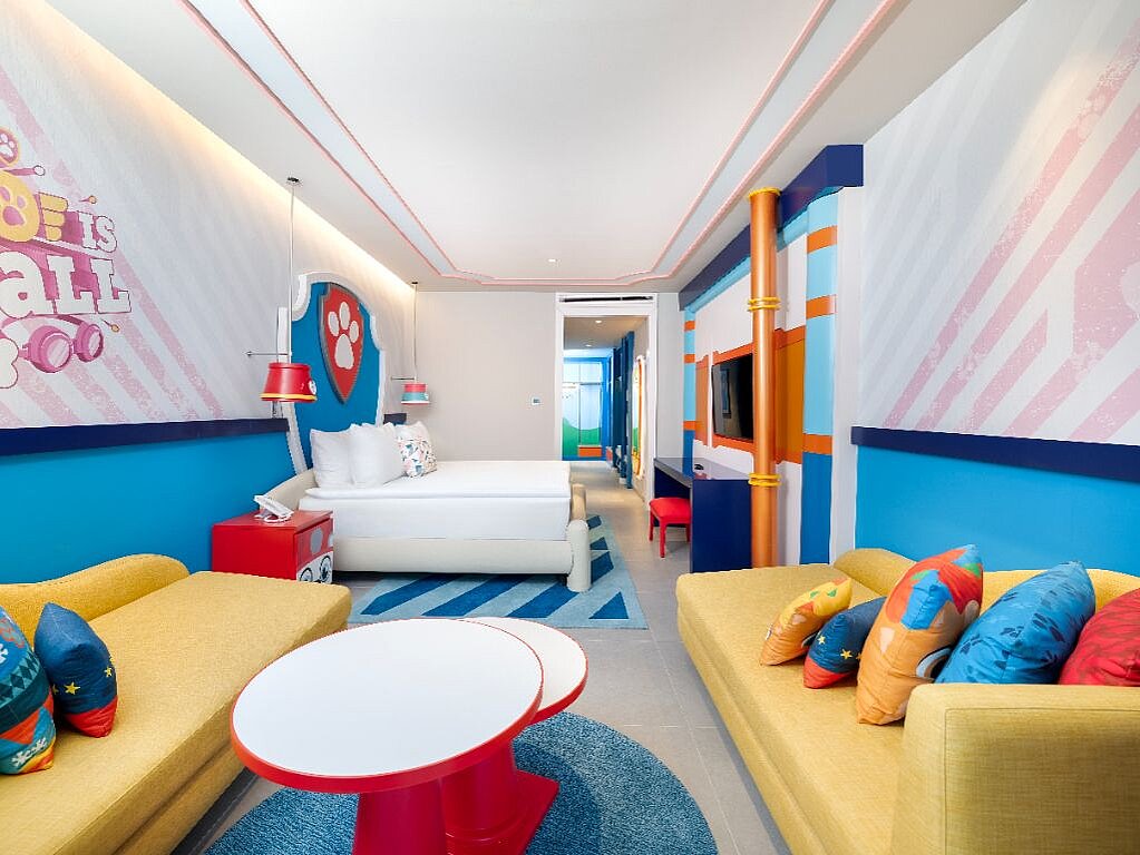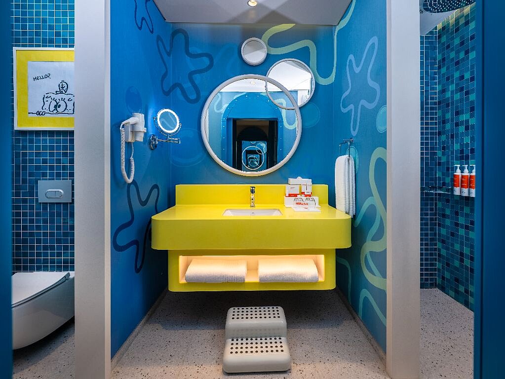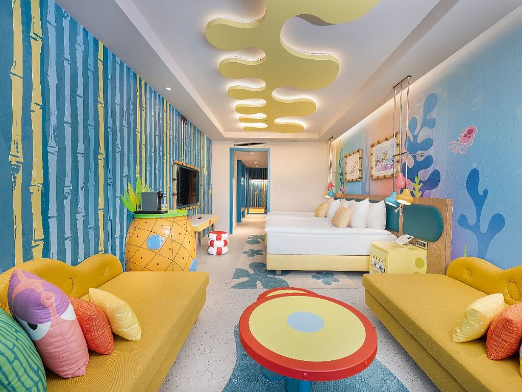 Rommene er innredet i ulike Nickelodeon-verdener – som Svampebob Firkant, Paw Patrol, Dora Utforskeren, Teenage Mutant Ninja Turtles og Star Trek – slik at hvert rom føles som en egen liten del av eventyret selv når dere tar pause fra fornøyelsesparken. Samtidig er de planlagt for familieliv, med generøse arealer og smarte løsninger som gjør det lett å bo flere sammen. Lekne farger og barnevennlige detaljer, som barneskammel på badet samt tøfler i både barne- og voksenstørrelse, gjør hverdagen smidigere når små reisende skal gjøre seg klare. Og når barna fortsetter mot neste aktivitet finnes spa, treningsrom og roligere fellesområder der voksne kan lande en stund før neste runde ved bassenget.