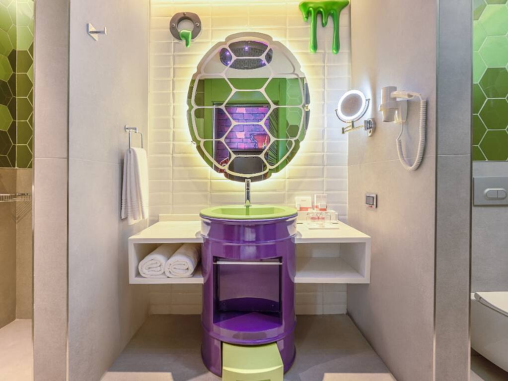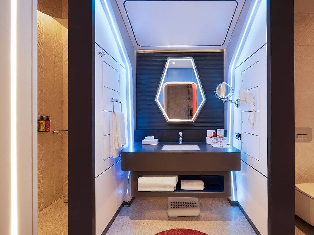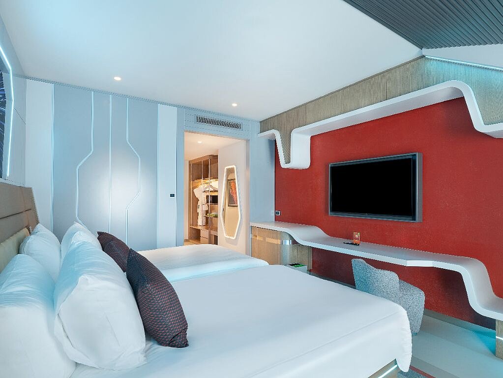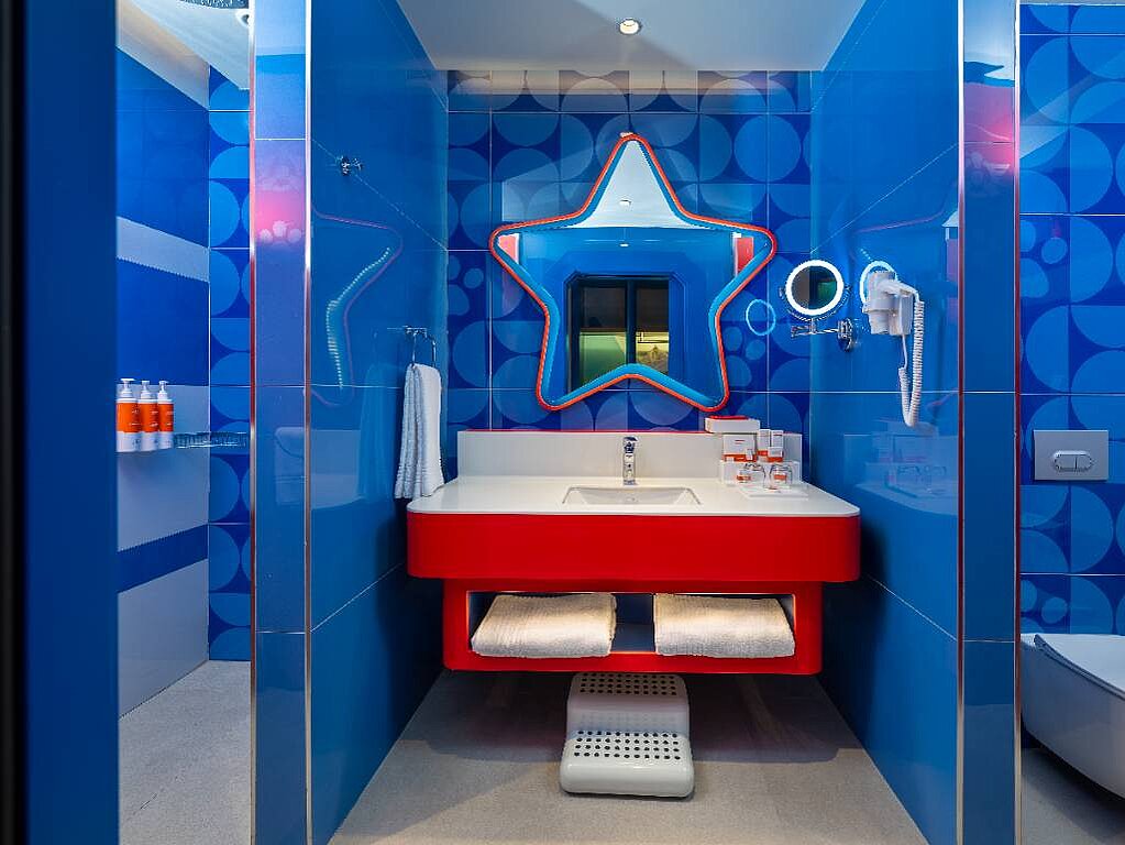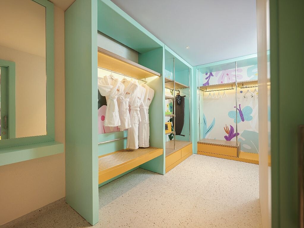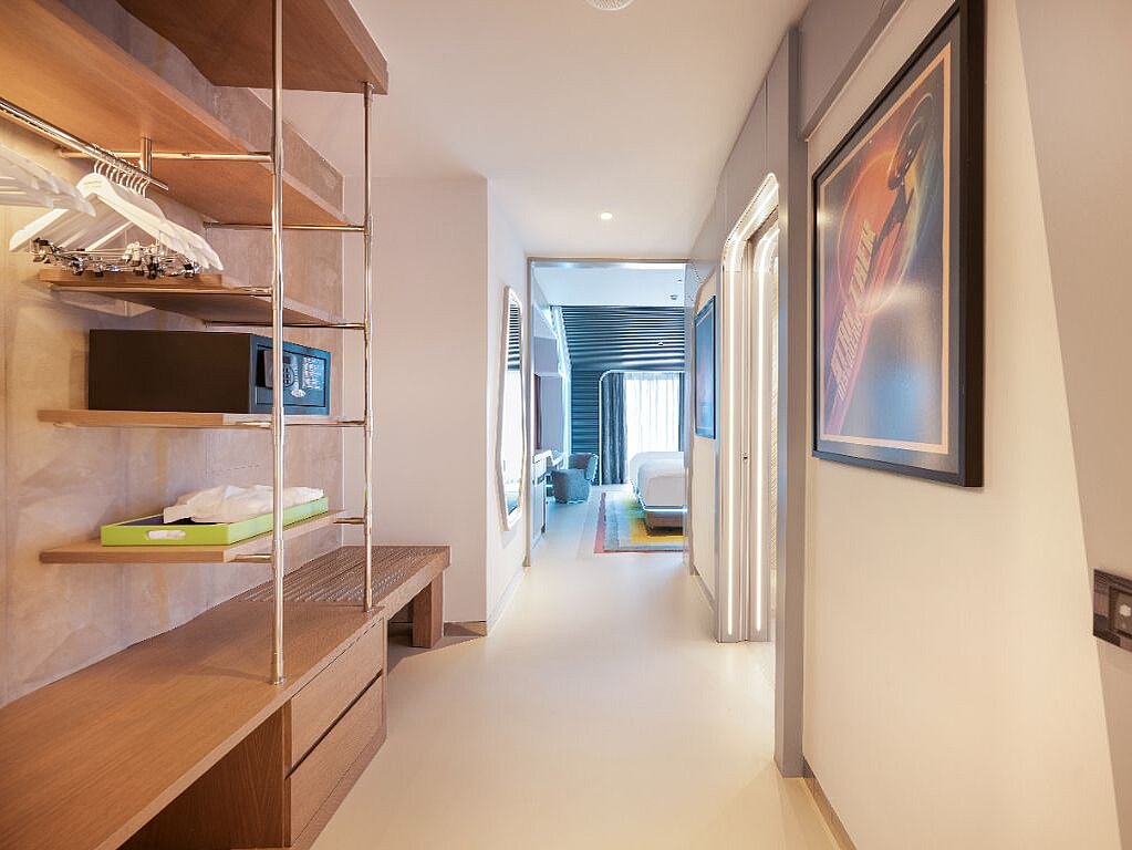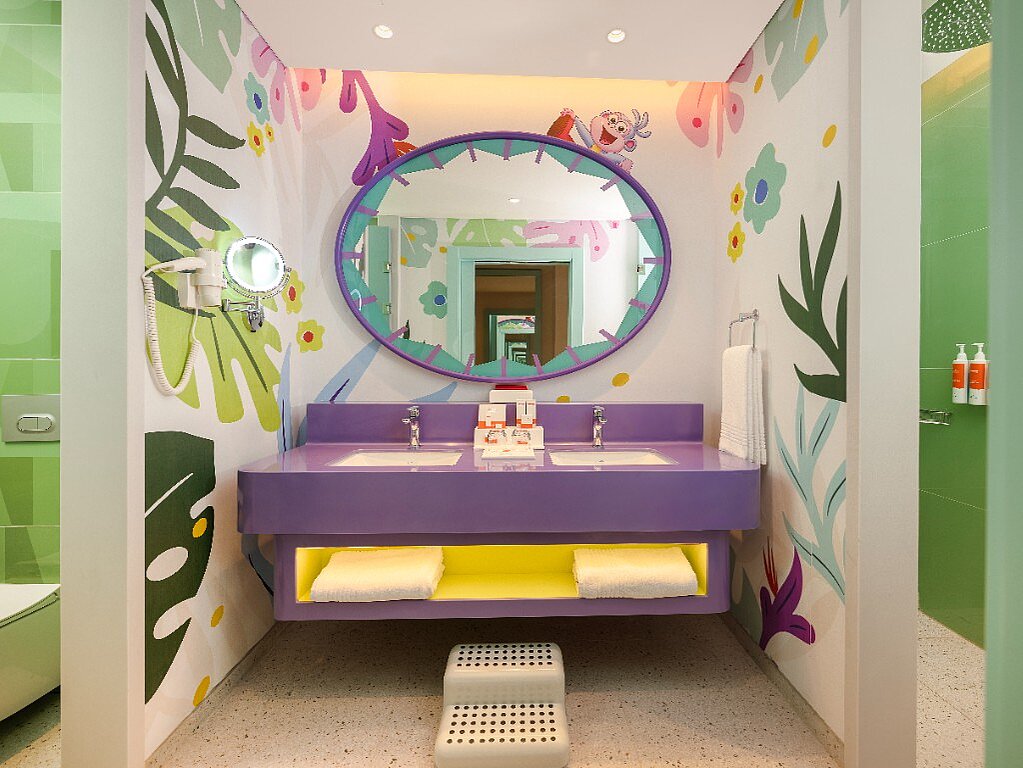 Rommene er innredet i ulike Nickelodeon-verdener – som Svampebob Firkant, Paw Patrol, Dora Utforskeren, Teenage Mutant Ninja Turtles og Star Trek – slik at hvert rom føles som en egen liten del av eventyret selv når dere tar pause fra fornøyelsesparken. Samtidig er de planlagt for familieliv, med generøse arealer og smarte løsninger som gjør det lett å bo flere sammen. Lekne farger og barnevennlige detaljer, som barneskammel på badet samt tøfler i både barne- og voksenstørrelse, gjør hverdagen smidigere når små reisende skal gjøre seg klare. Og når barna fortsetter mot neste aktivitet finnes spa, treningsrom og roligere fellesområder der voksne kan lande en stund før neste runde ved bassenget.