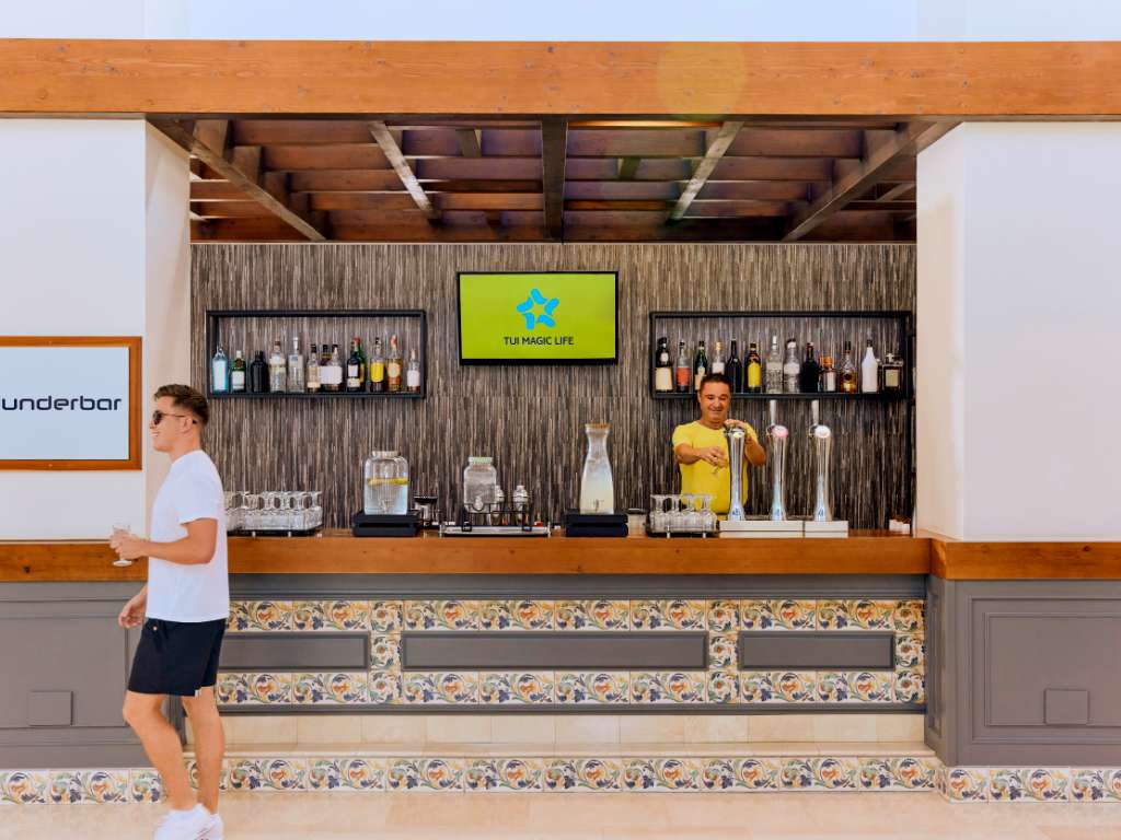 På dette hotellet er det ikke mindre enn åtte barer. Her er det for eksempel både en praktisk bassengbar og en strandbar, så du har forfriskninger i nærheten når du nyter solen ved bassenget eller stranden. Hotellet har også en litt roligere bar som henvender seg til personer over 16 år og en hyggelig kafé hvor det serveres kaffe til bestemte tider på døgnet. En av barene er åpen 24 timer i døgnet, og de fleste av hotellets snackbarer er åpne om ettermiddagen.