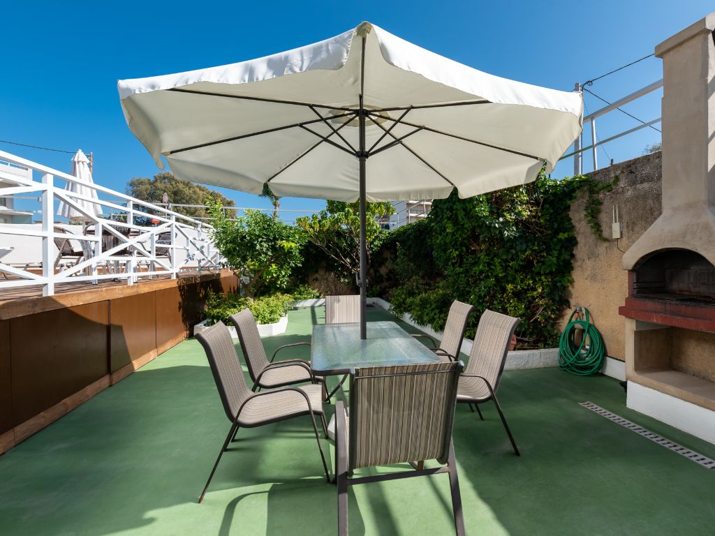 En kort spasertur på cirka tre minutter tar deg til Zefyros stranden. Stranden består av en blanding av sand og grus og passer både til soling og bading. Langs strandpromenaden finner du flere spisesteder og sitteplasser i skyggen. Den sentrale beliggenheten gjør det enkelt å veksle mellom by og strand i løpet av dagen.