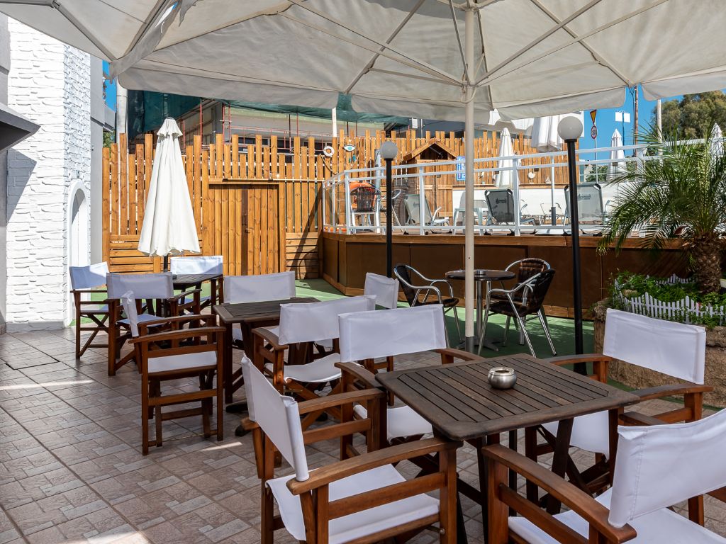Marine Congo Hotel har et lite, men innbydende bassengområde der du kan slappe av i de varmeste timene av dagen. For deg som foretrekker havet, ligger Zefyros stranden bare noen minutters gange unna – et praktisk alternativ for en rask dukkert eller en rolig stund ved vannet.