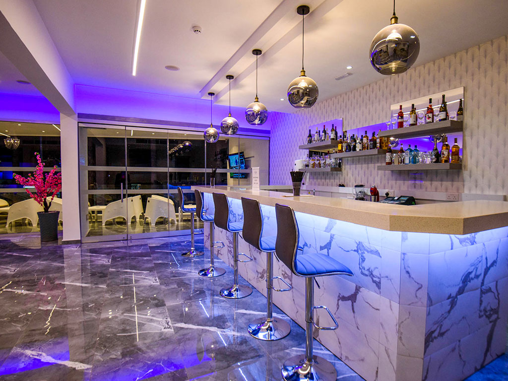 Milea Hotel har også to barer. Den ene er i lobbyen hvor du kan nyte drinken din i et trendy salongmiljø eller sitte ute. Du finner den andre baren bra plassert ved bassengkanten og der kan du også kjøpe enklere retter.