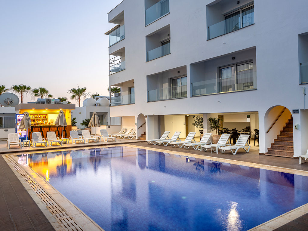 Milea Hotel ligger i hjertet av Ayia Napa by. Hotellet er et godt valg for deg som søker en aktiv ferie med sentral beliggenhet.