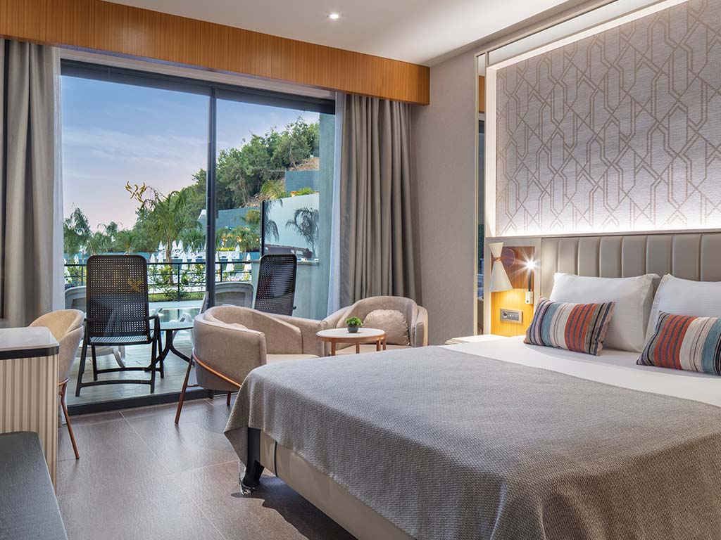 Dobbeltrommet på 33 m² har tre sengeplasser og krever minst to fullt betalende gjester, med plass til maks tre voksne. Det er mulig å få barnepris for et barn. Romtypen kan oppgraderes til dobbeltrom med swim-up-basseng og havutsikt mot et tillegg.