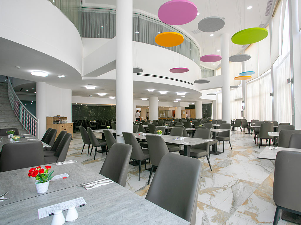 I hovedrestauranten på hotellet, hvor du spiser dagens tre måltider, tilbys blant annet kalde og varme retter, salater, brød og lokal drikke. Noen ganger arrangeres det show cooking om kveldene, hvor maten lages rett foran deg, og også forskjellige temakvelder med mat fra alle verdenshjørner. Til dessert serveres lokale bakverk og fersk frukt.