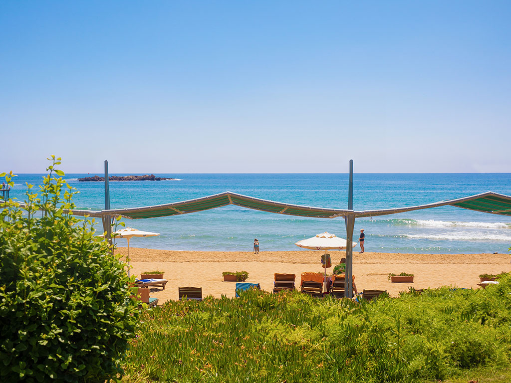 Pegasos Club ligger rett foran en lang, finkornet, gyllen sandstrand som er barnevennlig og langgrunn. Stranden byr også på virkelig vakre solnedganger over havet. Ved stranden ligger en stor, actionfylt wipeout-bane – en bane som består av oppblåsbare hinder som flyter på vannet. Den kan brukes helt fritt av alle Nazar-gjester! Banen er åpen i høysesongen, med unntak av dårlige værforhold.