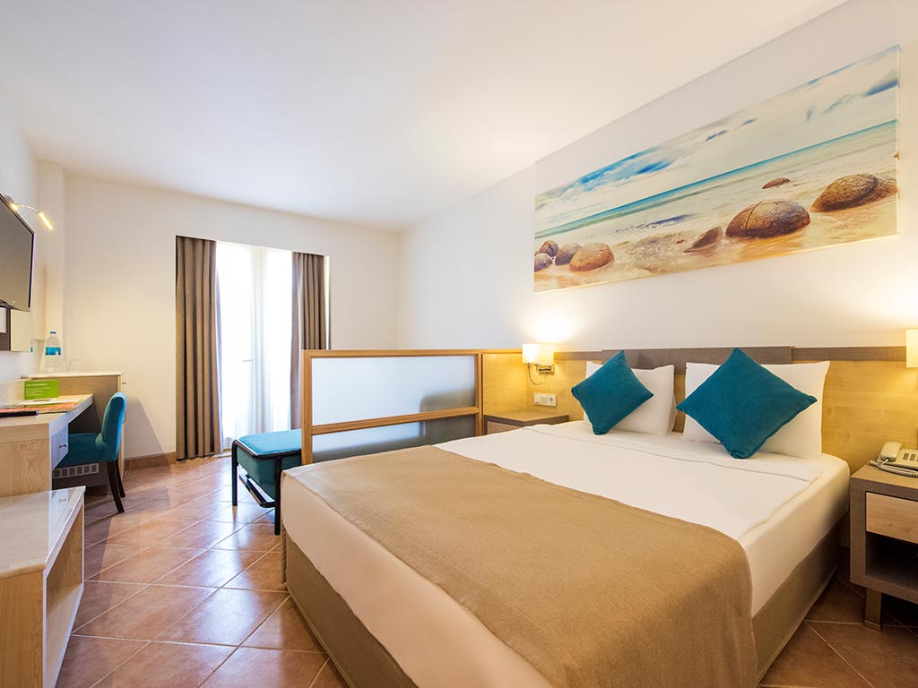 Pegasos Club er et familiehotell med 417 rom. Alle rom er funksjonelt og lyst innredet og har utsikt mot land, bassengområdet eller deler av havet. Rommen har laminatgulv eller vegg-til-vegg-teppe.